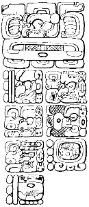 East side of stela C in Quirigua with mythical creation date in 13 (or 0) baktun, 0 katun, 0 tun, 0 uinal, 0 kin, 4 Ahau and 8 Cumku and corresponds to August 11, 3114 BCE