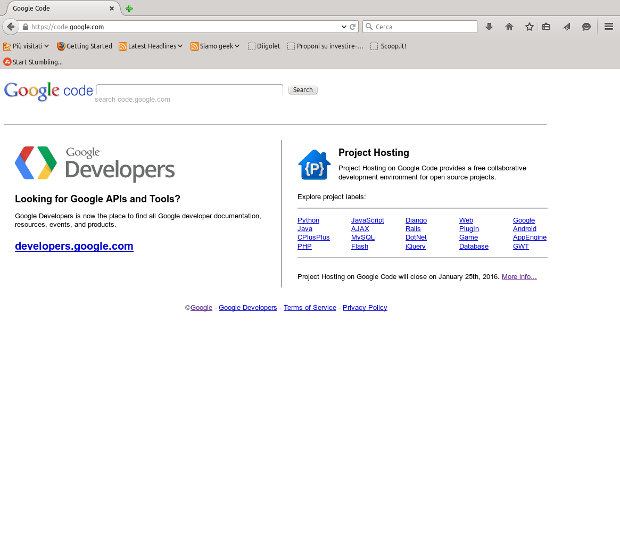 Google announced the closure of the free hosting service for free software projects Google Code. Since yesterday, March 12, 2015, the possibility of creating new projects on the website was eliminated, from August 24, 2015 it will be impossible to make changes to existing projects while with a read-only access to the pages, on January 25, 2016 the service will be shut down for good.
