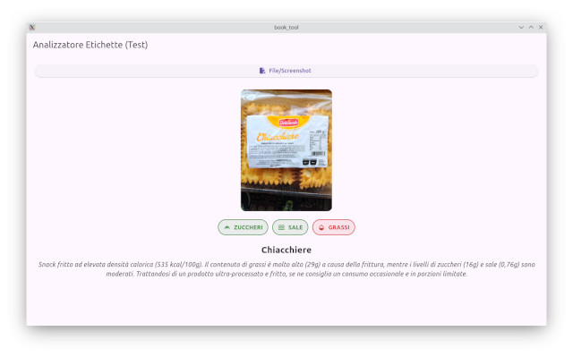 I’ve completed version 0.1 of the book cover analysis app, but it’s not yet ready for distribution. The main problem is that sometimes the original title of an Italian edition of a book is incorrect, so a verification chain is needed to fix these hallucinations. This requires thinking beyond the capabilities of an LLM, and in the meantime, I’ve started developing a food label analysis app. It’s an adventure that’s both stimulating and frustrating, and who knows how it will continue.
